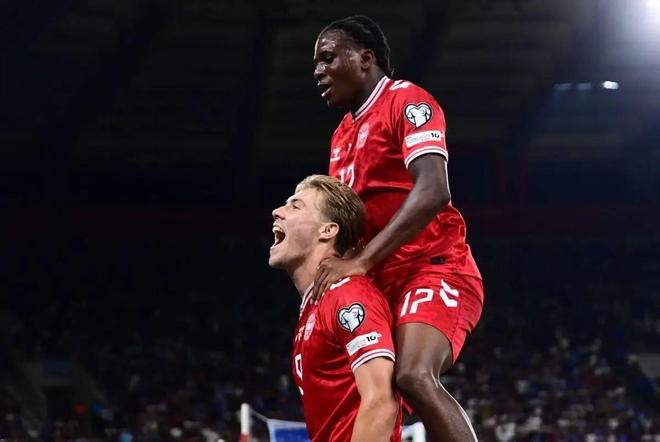 9月9日讯 在北京时间今天凌晨进行的2026年世界杯预选赛中,丹麦队在客场以3比0战胜希腊。这场比赛的最大亮点是霍伊伦的表现,这位刚刚从曼联转会至那不勒斯的前锋,在替补出场仅26分钟后便取得了进球。