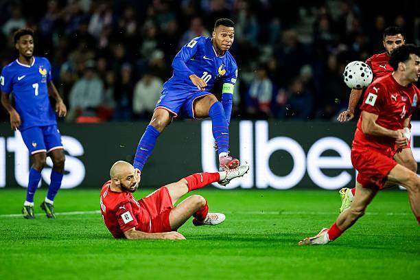 最终,是姆巴佩以一己之力打破了僵局。上半场进入补时阶段,姆巴佩从中路开始带球突进,当时阿塞拜疆有七八名球员位于他正前方站好了阵势,但是姆巴佩接连带球硬吃对手,单骑闯关杀入禁区,面对门将冷静射门打破僵局,1比0。