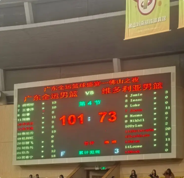 北京时间10月14日消息,在今晚结束的一场热身赛中,广东全运男篮以101-73击败澳洲维多利亚男篮。