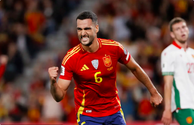 北京时间10月15日凌晨,2026世预赛欧洲区小组赛E组第四轮,西班牙坐镇主场迎战保加利亚。上半场,梅里诺头球破门。下半场,梅里诺再下一城,阿莱克斯-加西亚造切尔内夫乌龙,梅里诺造点奥亚萨瓦尔点射破门。最终,西班牙4-0大胜保加利亚,豪取四连胜继续领跑积分榜。