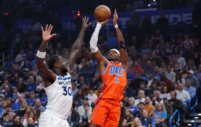 雷霆队首发:谢伊-吉尔杰斯-亚历山大、以赛亚-哈尔滕施泰因、切特-霍姆格伦、卡森-华莱士、吕冈茨-多尔特