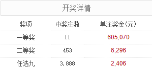 足彩25172期开奖结果:一等奖11注 单注奖金60.5万元