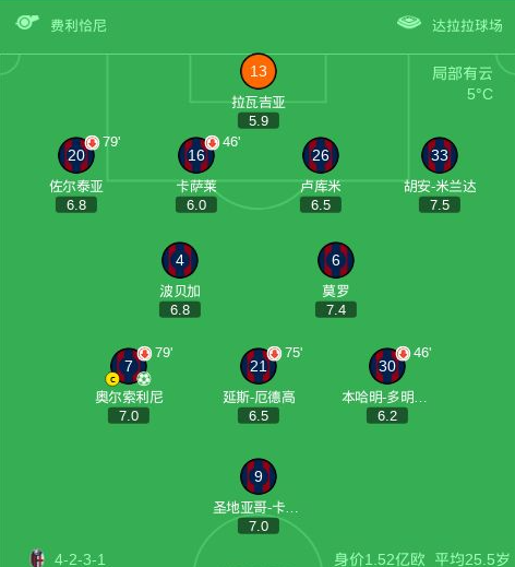 第31分钟,克雷莫内塞球员比安切蒂助攻帕耶罗打入一球。