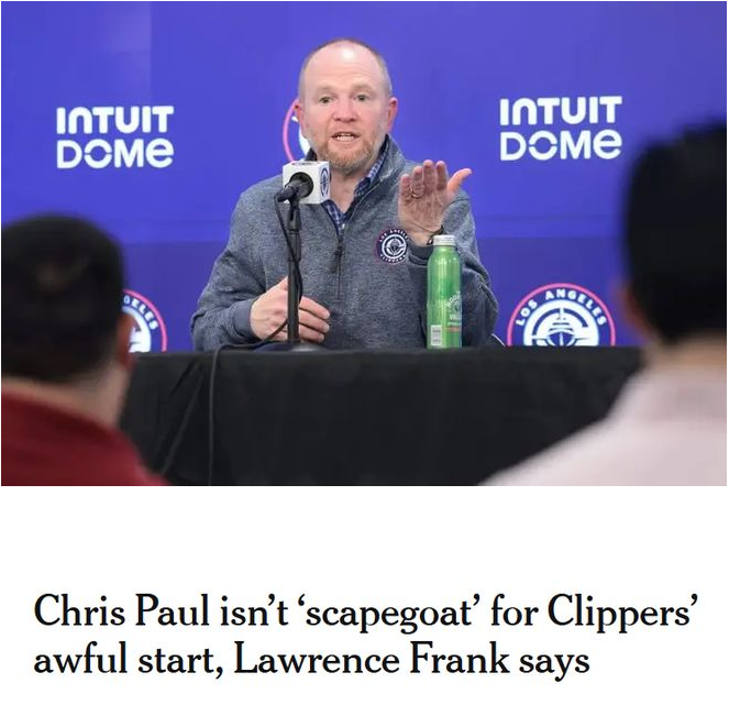 弗兰克还坦言,自己与主帅泰伦-卢一同搭建的这套阵容未能打出应有水准,以此为放弃保罗的决定担责。他表示快船队“攻防两端的表现都很糟糕”,但同时也指出,他和卢将主导球队后续的任何提升工作。