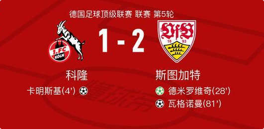 斯图加特2-1逆转科隆,瓦格诺曼、德米罗维奇点射破门