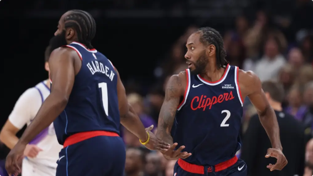 快船队首发:伊维察-祖巴茨、詹姆斯-哈登、小德里克-琼斯、科怀-伦纳德、布拉德利-比尔