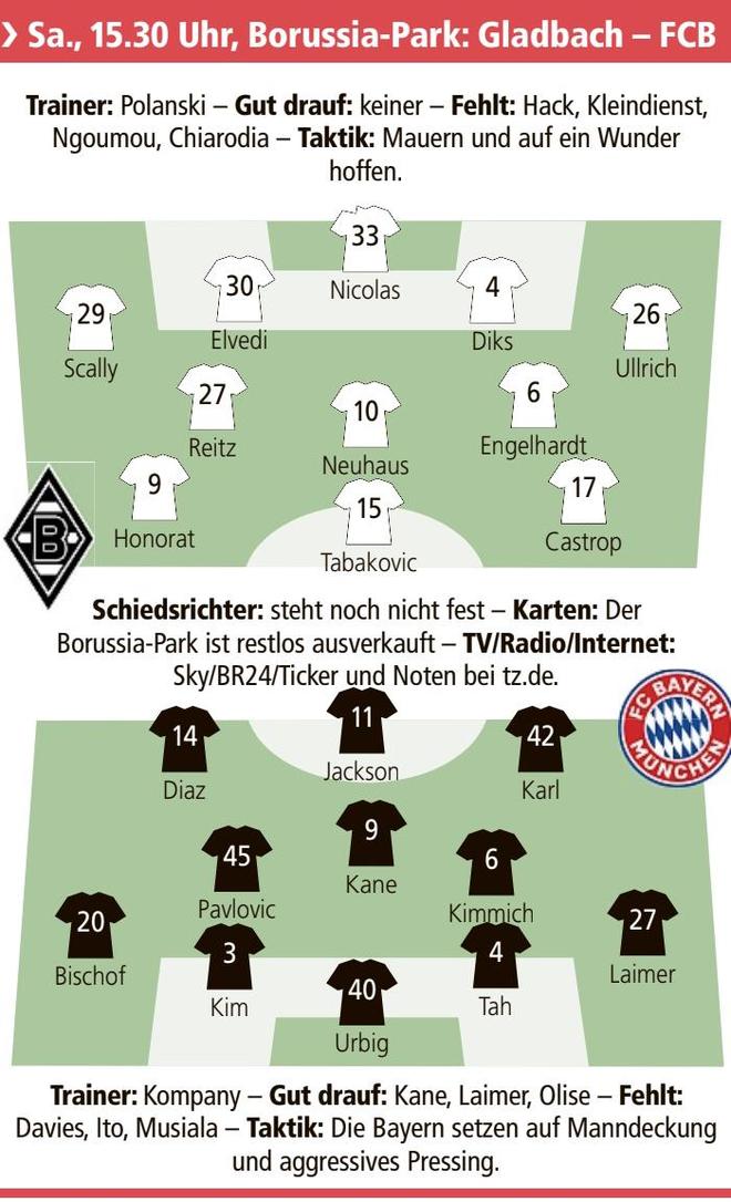 10月25日讯 北京时间10月25日21:30,德甲第8轮,拜仁慕尼黑客场迎战门兴格拉德巴赫。本场比赛开始之前,德国媒体《慕尼黑日报》预测双方首发阵容,拜仁慕尼黑方面进行多处轮换,杰克逊、比朔夫、金玟哉等人可能会获得出场机会,诺伊尔也将在替补席待命。