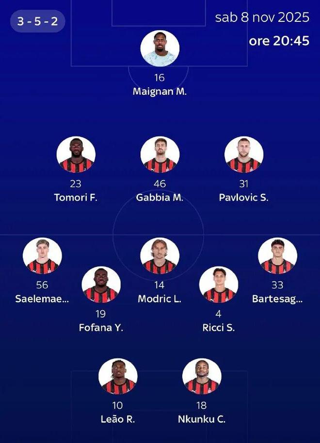 意甲第11轮-米兰对阵帕尔马,预测首发出炉