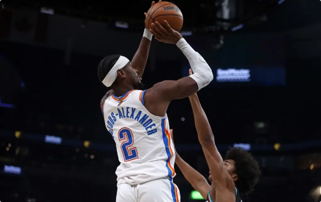 雷霆队首发:谢伊-吉尔杰斯-亚历山大、阿杰-米切尔、切特-霍姆格伦、以赛亚-哈尔滕施泰因、卡森-华莱士