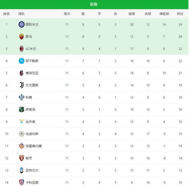 时间:2025-11-10 12:12:09本赛季的意甲联赛争冠争四异常的激烈,没有一枝独秀的球队,前5球都分差咬得非常的紧,一场比赛的结束,就瞬间让积分榜大变样,确实是近年来少有的刺激。联赛第11轮多场比赛在今天同时结束,竞争格局彻底乱了套:卫冕冠军那不勒斯客场爆冷不敌博洛尼亚;罗马坐镇主场稳稳拿下乌迪内斯再度反超AC米兰;而国际米兰则在强强对话中轻松击败拉齐奥,最终凭借净胜球优势成功跃居榜首位置。