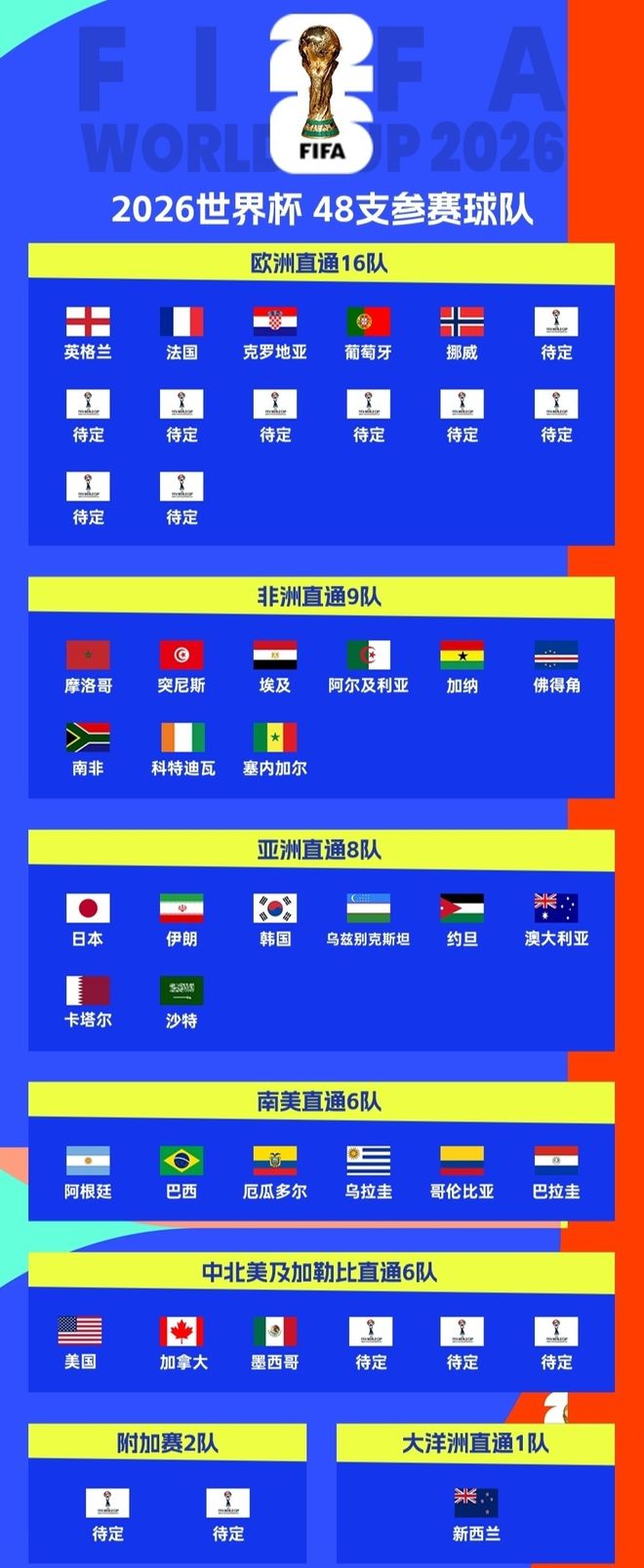 世界杯48强已确定32席:葡萄牙挪威出线!