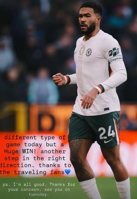 里斯-詹姆斯在社媒写道:今天的比赛风格不太一样,但这是一场巨大的胜利!我们朝着正确方向又迈进了一步,感谢随队远征的球迷们。 附:我身体没事,谢谢大家的关心,周二见。
