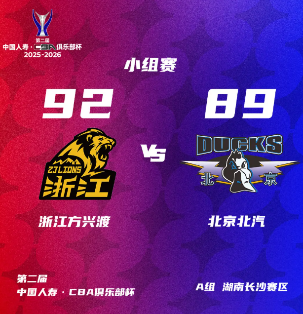 北京时间12月8日消息,第二届CBA俱乐部杯小组赛继续进行。浙江广厦男篮经过四节较量以92-89战胜北京男篮,喜获4连胜;北京队1胜3负。