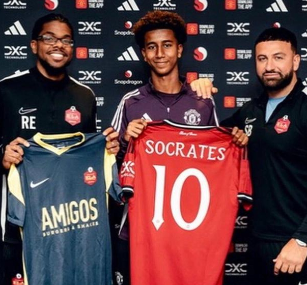 曼联签下的这个苏格拉底,出自ELA伦敦精英青训学院,曾先后在阿森纳、热刺和水晶宫试训,最终转会至曼联。13岁的苏格拉底最初是一名左边锋,但在改踢中后卫之后,才吸引了曼联球探的关注。然而,签约曼联时,苏格拉底拿着印有自己号码的10号球衣,他可能更想在老特拉福德冲锋陷阵,做一名攻击型球员。