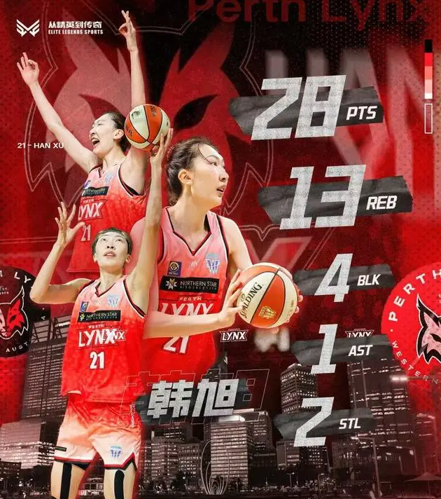 28分13个篮板!韩旭打出加盟澳洲女篮联赛后的最佳表现