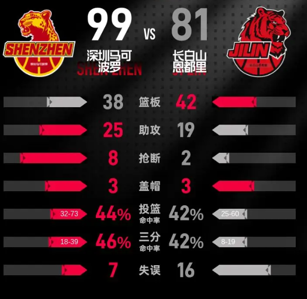 第四节开局,深圳马可波罗的手感有所回落,双方的分差缩小至8分。随着比赛的进行,深圳马可波罗逐渐恢复状态,展开了一波攻势,扩大至21分的领先优势。在小节的后段,长白山恩都里尽全力追赶,试图逆转局面。本节比赛中,深圳马可波罗的王浩然表现抢眼,拿下10分,其中包括1记三分球。最终,深圳马可波罗以99-81赢下比赛,取得胜利。