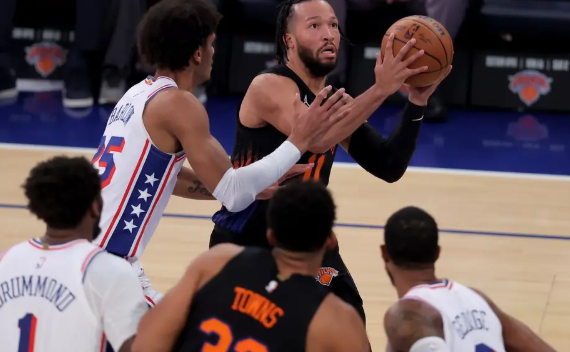 尼克斯队首发:杰伦-布伦森、卡尔-安东尼-唐斯、米卡尔-布里奇斯、约什-哈特、OG-阿奴诺比