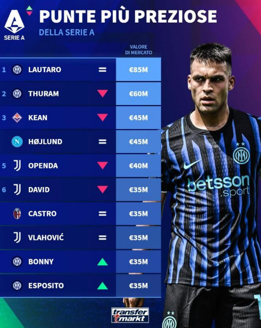 1. 劳塔罗(国际米兰) 8500万欧元