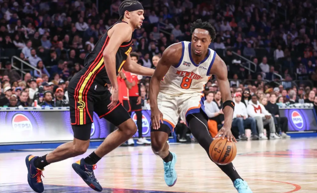 尼克斯队首发:杰伦-布伦森、OG-阿奴诺比、米卡尔-布里奇斯、迈尔斯-麦克布莱德、阿里尔-胡克波尔蒂