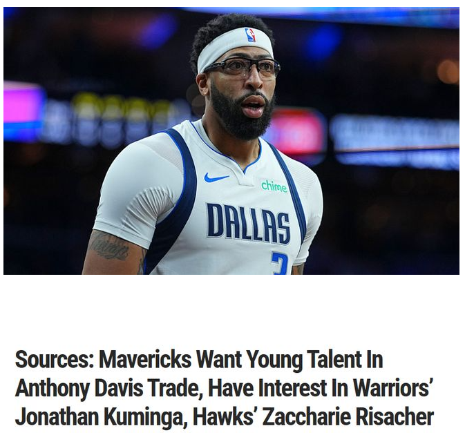 阿夫塞斯写道:“消息人士此前透露,若独行侠最终决定交易戴维斯,他们会优先争取至少一名实力出众的年轻球员。消息人士还称,在那些内部讨论过引进戴维斯的球队中,独行侠对勇士的库明加和老鹰的里萨谢很感兴趣。”