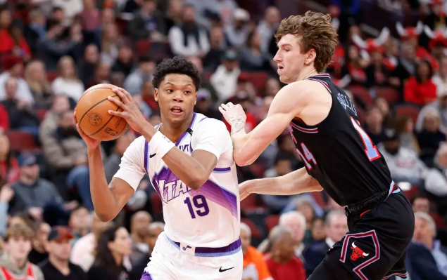第一节比赛开始,公牛与爵士展开了激烈争夺,双方在场上交错得分,呈现出胶着的态势。公牛的武切维奇表现出色,首节贡献11分,包括一记三分球;而爵士的森萨博则火力全开,单节狂砍21分,状态热得发烫,并投中三记三分球。经过一番角逐,爵士在第一节结束时以39-36领先。