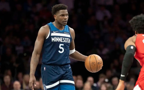 森林狼队首发:朱利叶斯-兰德尔、安东尼-爱德华兹、贾登-麦克丹尼尔斯、丹特-迪文琴佐、鲁迪-戈贝尔
