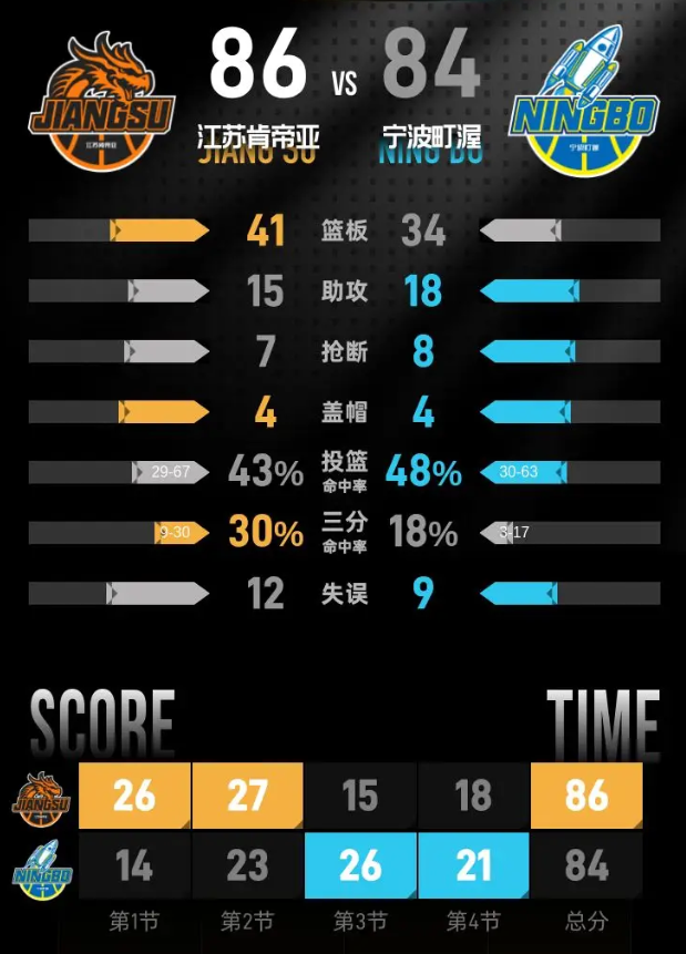 庞峥麟27分吴羽佳准绝杀 江苏客场险胜宁波2连胜