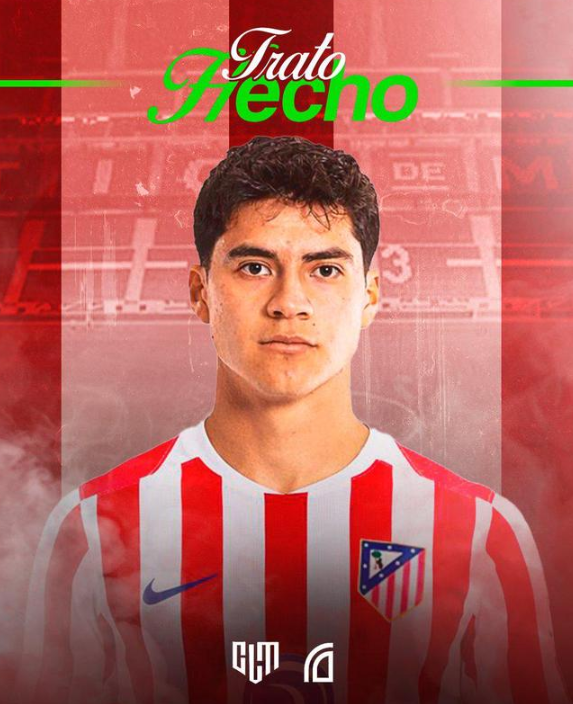 该记者表示:“奥贝德-巴尔加斯与马德里竞技签约至2030年6月。这位墨西哥球员将被租借至另一支西班牙俱乐部积累比赛经验。”