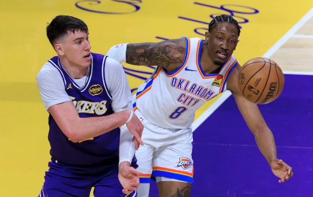 第二节,湖人积极尝试缩小分差,成功将比分追至36-36,然而雷霆在接下来的攻势中表现出色,迅速将领先优势扩大到14分。尽管湖人在小节后段开始稳住局势,逐步缩小差距,但半场结束时,雷霆依然以67-58保持领先。