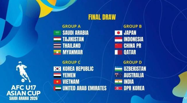 官方:2026亚足联U17亚洲杯中国队分组出炉!
