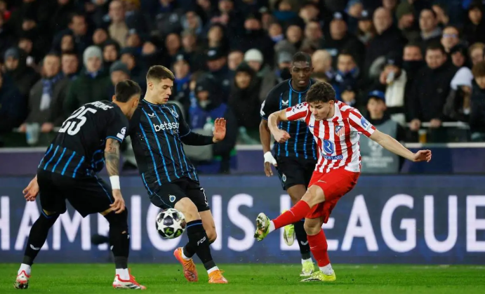 欧冠附加赛首回合布鲁日主场3-3战平马竞,领先两球
