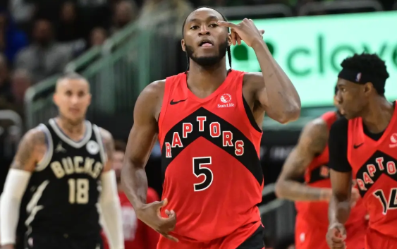猛龙队首发:伊曼纽尔-奎克利、布兰登-英格拉姆、贾科比-沃尔特、RJ-巴雷特、雅各布-珀尔特尔