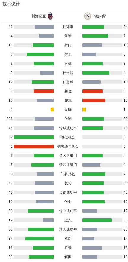 博洛尼亚1-0乌迪内斯,贝尔纳代斯基点射制胜