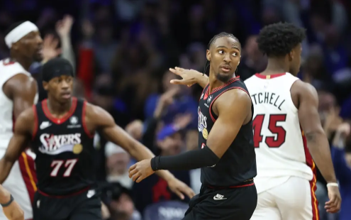 进入最后一节,76人在开局时依旧面临压力,热火乘势追击,再次抹平比分,并一度反超。然而,76人最终稳住阵脚,在比赛末段逐步拉近了分差,确保了胜利。比赛末尾,76人以124-117赢得比赛,成功锁定胜局。