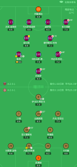 第20分钟,先拔头筹,鲍恩门前得分,西汉姆联1-0