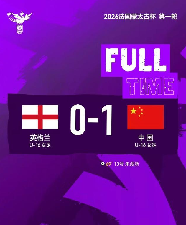 北京时间3月31日凌晨,作为2027年U17女足亚洲杯及U17女足世界杯适龄参赛队,由前国脚訾晶晶率领的2010年龄段中国U16女足在法国旺代省普佐日球场以1比0力克英格兰U16女足,取得2026年蒙太古杯(女足)邀请赛开门红。