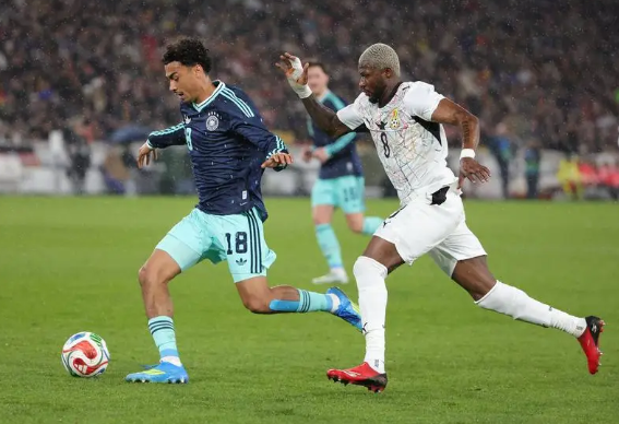 北京时间3月31日凌晨2:45分,国际足球友谊赛在德国进行,德国队主场对阵加纳。上半场比赛,维尔茨进球无效,哈弗茨点射帮助德国队取得领先,半场德国1-0加纳;下半场,伊萨哈库为加纳扳平比分,翁达夫第88分钟贡献绝杀,最终德国队2-1战胜加纳。