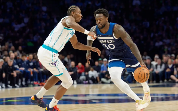 森林狼队首发:朱利叶斯-兰德尔、鲁迪-戈贝尔、阿约-多森姆、迈克-康利、丹特-迪文琴佐