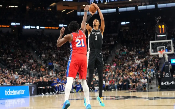 次节比赛,恩比德罚中一球追平比分,两队多次交换领先,马刺逐渐打出进攻高潮,福克斯连续内线得分,卡斯尔和科内特相继篮下取分,马刺很快将分差拉开到5分。哈珀外线三分命中扩大优势,文班亚马延续出色状态,快攻扣篮、三分命中接连砍分,马刺始终保持5分以上领先,半场结束时马刺62-55领先7分。