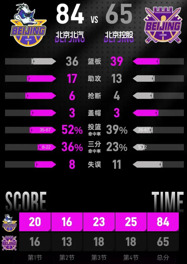 全场具体比分(北京控股队在后):20-16、16-13、23-18、25-18。