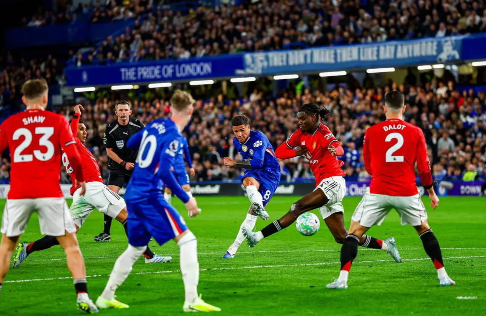 下半场比赛中,第51分钟恩佐右路拿球低平球传中中路,凯塞多禁区外得球右脚远射偏出,第53分钟曼联反击,库尼亚中路脚后跟做球,B费得球一路推进禁区外远射偏出,第56分钟内托小斜线传中,德拉普后点头球击中横梁,第61分钟古斯托右路得球扫向中路,帕尔默禁区内垫射偏出。