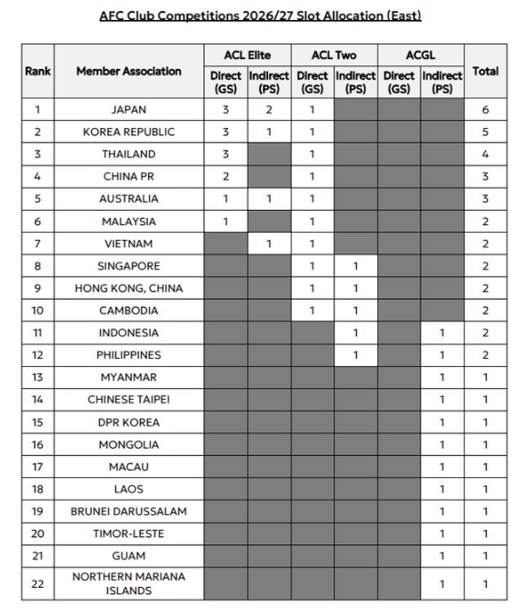 附:亚冠精英联赛参赛席位(正赛+附加赛)
